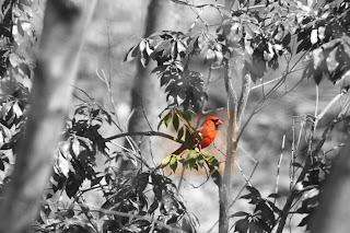 Decided to play around in Elements with a few photos taken recently....this beautiful cardinal has made his home here for awhile..........